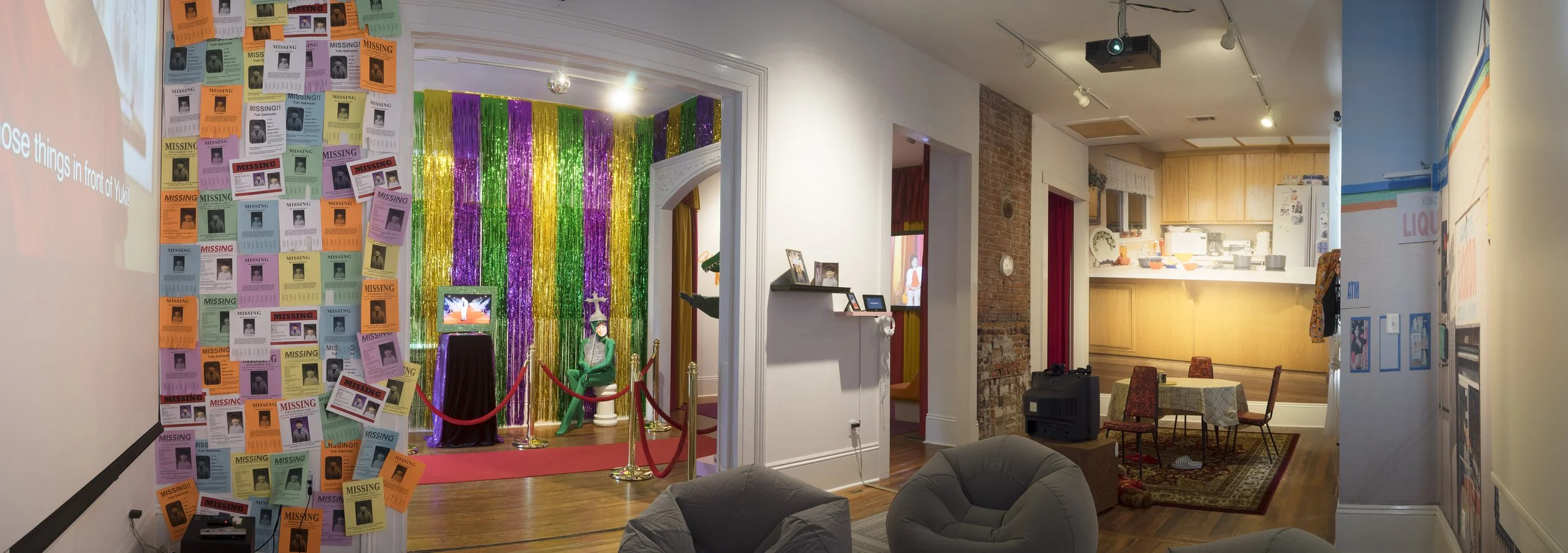 At Groundspace Project in Los Angeles (2017), the seven KOKO's Love related videos were arranged to transform the space into a mini version of a KOKO’s Love type amusement park with a “Yuki Land” to the left with Yuki’s bedroom setup, a “Spiritual Swamp of New Orleans” straight ahead, and “You’re Married…. Now What?” to the right. These installations are created to transform the physical space and transport the viewer into an immersive KOKO's Love world.